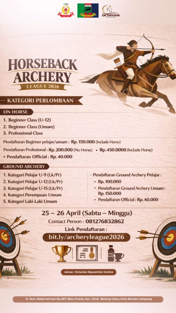 Horseback Archery League 2026 hadir membawa pengalaman berbeda: memadukan kecepatan berkuda dengan ketepatan memanah. Sebuah kombinasi skill, fokus, dan adrenalin yang jarang ditemui di event panahan biasa.